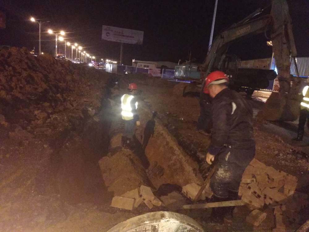 在李星明的指導(dǎo)下,周道林立即組織制定排澇方案,在致遠(yuǎn)路與西城大道交叉口北側(cè)找到排往水系的雨水井,迅速安排有關(guān)部門召集管線單位到現(xiàn)場確認(rèn)開挖范圍內(nèi)是否有管線,快速完成管線協(xié)調(diào)后,集團(tuán)公司連夜組織施工單位,落實排澇方案。經(jīng)過一個晚上通宵達(dá)旦連續(xù)搶工,修建出一條長50米、寬1.8米、深1.6米的排水溝槽,連通排洪渠和雨水管道,成功疏泄積水,次日清晨完成了搶險任務(wù)。桂林醫(yī)學(xué)院及致遠(yuǎn)路北段內(nèi)澇解決了,價值上千萬的儀器設(shè)備也得以確保安全,學(xué)校教學(xué)井然有序。