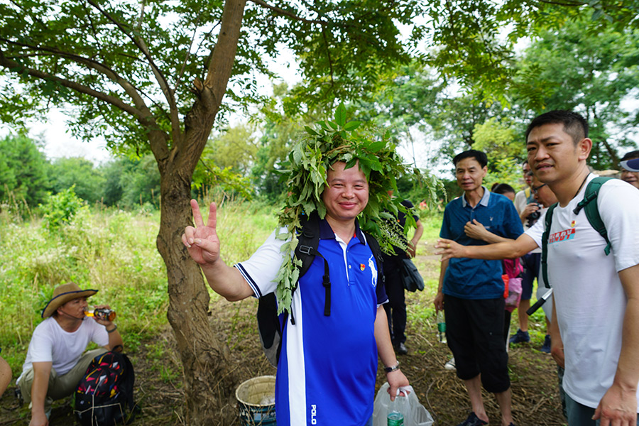 烈日炎炎,隊伍沿著溪流行進(jìn),來到一片荊棘林,按導(dǎo)航的方向,前方已經(jīng)沒有了路,同志們紛紛拾起樹枝,開辟著道路緩慢前行,經(jīng)歷了一個多小時的摸索,隊伍終于找到了正確的方向。中午16點,同志們途經(jīng)王家、棕樹園,抵達(dá)了麻市。