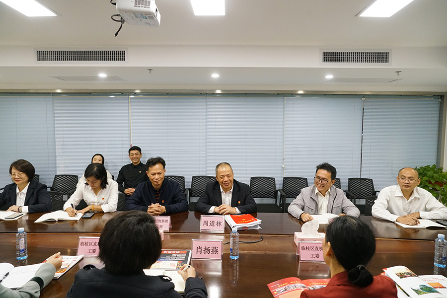 臨桂區(qū)直機(jī)關(guān)工委書記肖揚(yáng)燕一行到集團(tuán)公司調(diào)研指導(dǎo)國(guó)企黨建