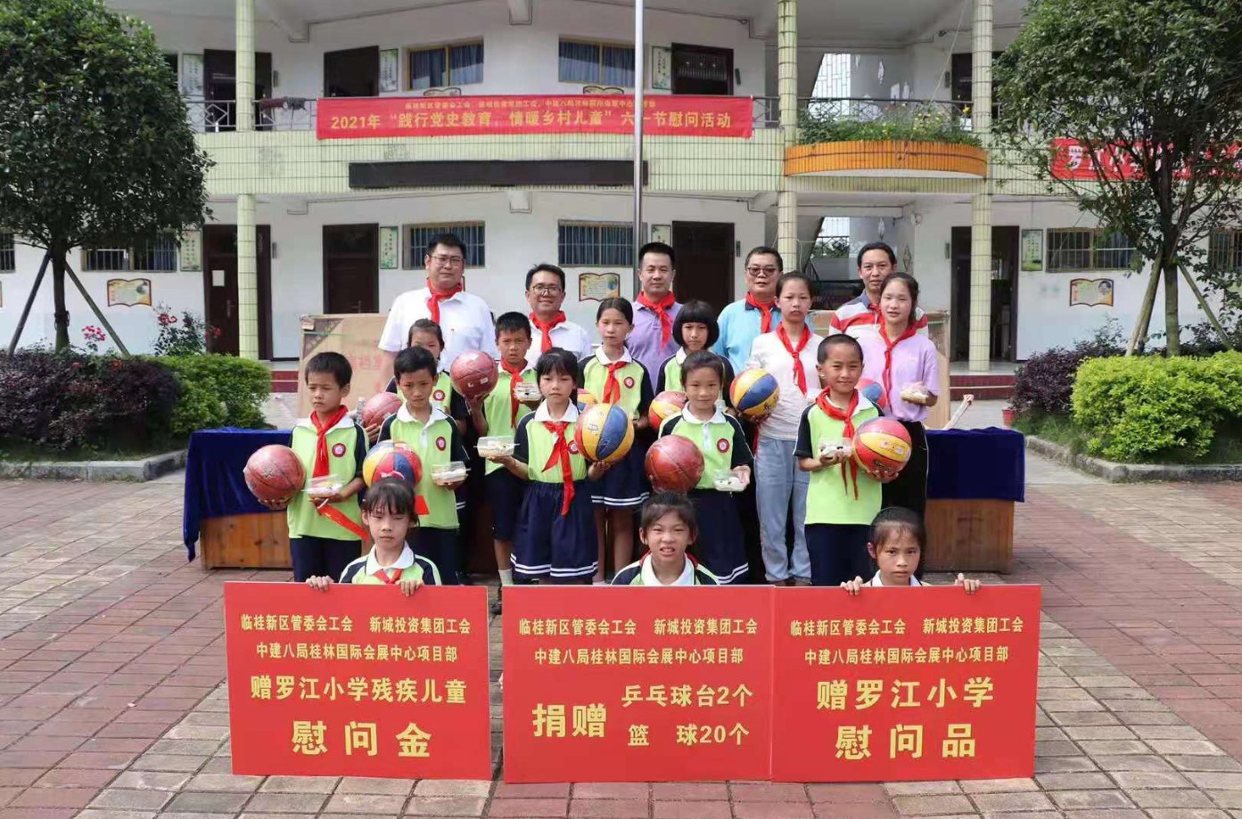 為認(rèn)真貫徹落實黨史學(xué)習(xí)教育我為群眾辦實事要求,臨桂新區(qū)管委會工會、新城投資集團(tuán)工會在臨桂區(qū)五通鎮(zhèn)羅江希望小學(xué)開展“踐行黨史教育,情暖鄉(xiāng)村兒童”六一節(jié)前夕慰問活動,并給孩子們帶來乒乓球臺、籃球、書包、文具、食品等物品,給小朋友們送上節(jié)日祝福。