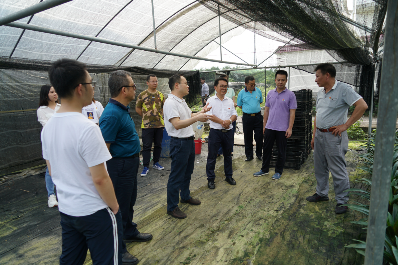 慰問組一行來到羅江村集體經(jīng)濟(jì)示范點,深入田間地頭,了解花卉、苗木、瓜果育苗等作物培育、銷售情況,了解村民收入及產(chǎn)業(yè)鏈的成效。