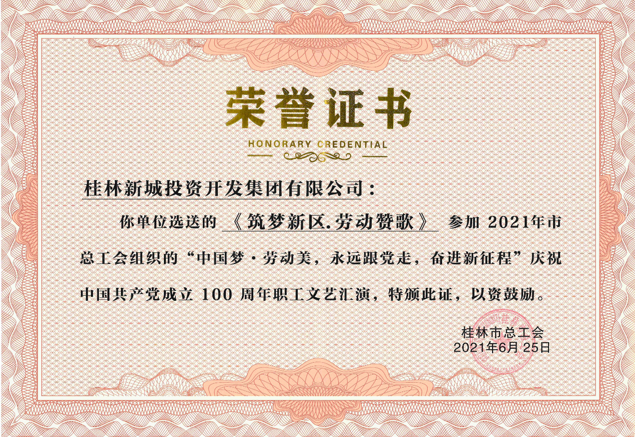 2021年6月25日,由桂林市總工會(huì)主辦的 “中國(guó)夢(mèng)勞動(dòng)美——永遠(yuǎn)跟黨走,奮進(jìn)新征程”慶祝中國(guó)共產(chǎn)黨成立100周年全市職工文藝匯演在桂林春天劇院隆重舉行。市委副書記趙仲華,市人大副主任、市總工會(huì)主席徐鋒,副市長(zhǎng)龍杏華,市政協(xié)副主席蔣昌桂,市總工會(huì)黨組書記、常務(wù)副主席、機(jī)關(guān)黨委書記寧志出席活動(dòng)。新城投資集團(tuán)黨總支書記、董事長(zhǎng)、總經(jīng)理周道林作為受邀嘉賓參加活動(dòng)。