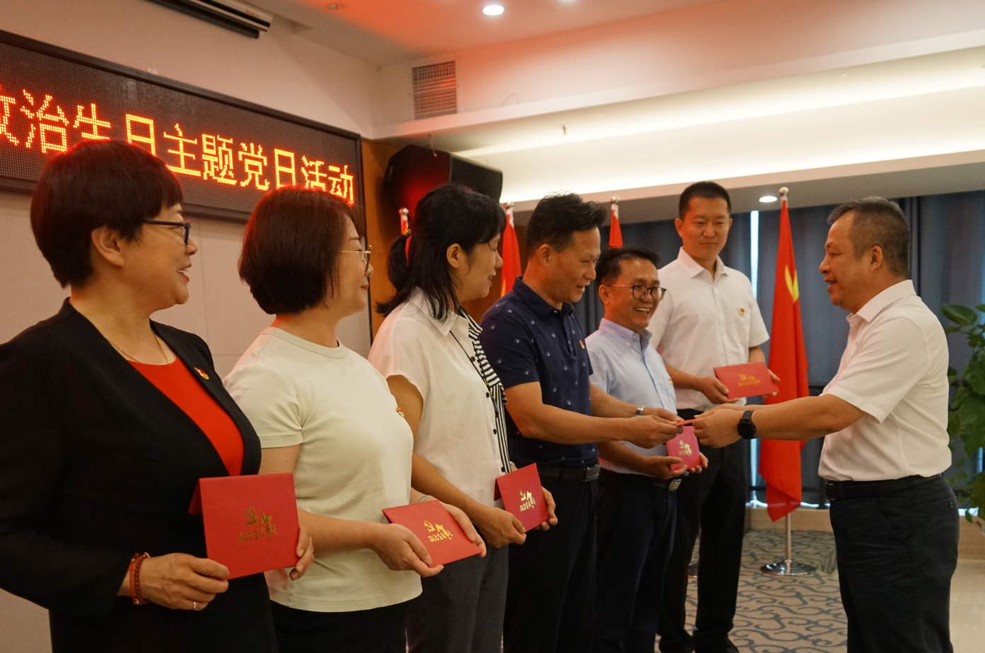 大會直播結(jié)束后,集團黨總支開展“獻禮建黨百年 政治生日憶初心”主題黨日活動,為所有的黨員慶祝政治生日。自治區(qū)優(yōu)秀黨務(wù)工作者、黨總支書記、董事長、總經(jīng)理周道林向黨總支委員和支部委員贈送政治生日卡,第一支部、第二支部書記向其他黨員贈送政治生日卡?!斑@是一份沉甸甸的政治生日禮物,是初心,更是責(zé)任”“我會時刻牢記共產(chǎn)黨員這一特殊身份”。黨員們在收到政治生日卡時,更多的感受到的是黨員的身份、黨員的榮譽、黨員的宗旨。