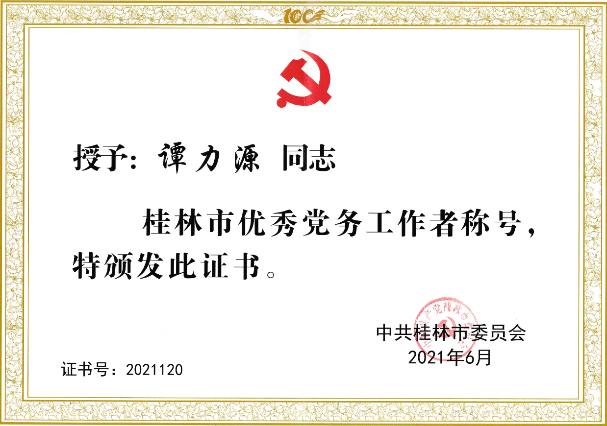 喜報|譚力源同志獲“桂林市優(yōu)秀黨務(wù)工作者”稱號