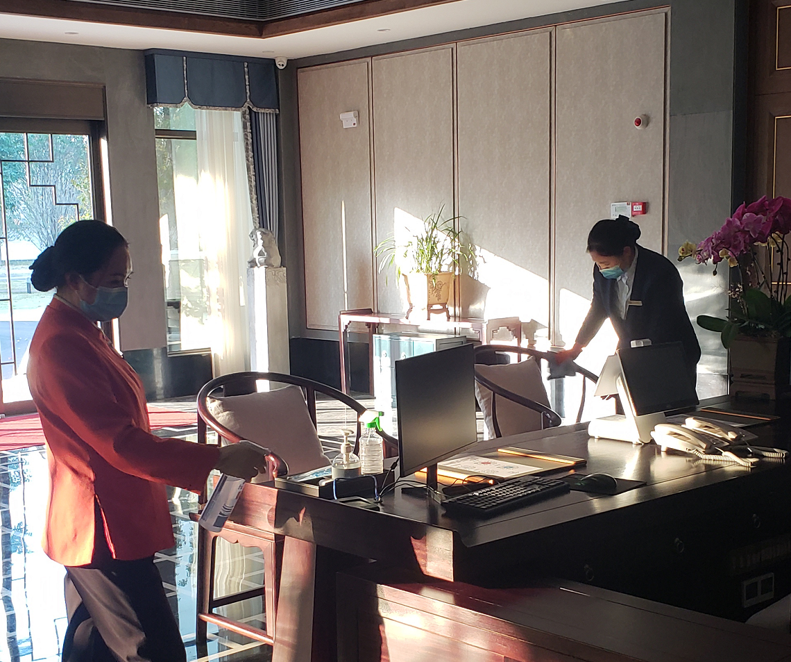 集團(tuán)公司各部室、子公司負(fù)責(zé)人對外來人員進(jìn)入辦公區(qū)、住宿區(qū)、建設(shè)區(qū)一律設(shè)崗,在一樓進(jìn)出口處登記并測量體溫,全程佩戴口罩,做到不留隱患、不留死角、不出紕漏。通過監(jiān)督檢查,宏謀物業(yè)、宏謀酒店、營銷公司、會展公司等窗口單位對疫情防控的后勤保障、檢測報(bào)告等主體責(zé)任措施落實(shí)到位,沒有發(fā)生防控措施落實(shí)不力等問題。