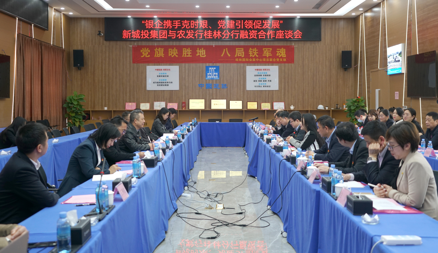 會(huì)上,新城投集團(tuán)對農(nóng)發(fā)行桂林分行服務(wù)會(huì)展項(xiàng)目融資需求,高效有序保障8億元項(xiàng)目建設(shè)資金及時(shí)到位,為會(huì)展項(xiàng)目如期推進(jìn)提供強(qiáng)力保障的責(zé)任擔(dān)當(dāng)和暖心支援表示誠摯感謝。會(huì)議指出,雙方通過開展黨建聯(lián)建,建立友好合作、互利雙贏、共同發(fā)展銀企關(guān)系,是在政府投融資體制改革和剝離融資平臺(tái)融資職能的背景下,加強(qiáng)企業(yè)與金融機(jī)構(gòu)的溝通協(xié)調(diào),共同探索投融資創(chuàng)新模式,對于助推謀劃項(xiàng)目落地,促進(jìn)金融服務(wù)桂林新區(qū)經(jīng)濟(jì)發(fā)揮著積極作用。希望雙方繼續(xù)發(fā)揮在各自領(lǐng)域的優(yōu)勢,增強(qiáng)核心競爭力,不斷強(qiáng)化黨建工作與業(yè)務(wù)發(fā)展深度融合,緊盯融資導(dǎo)向,搶抓政策機(jī)遇,全力推動(dòng)項(xiàng)目融資業(yè)務(wù)落地實(shí)施,構(gòu)建優(yōu)勢互補(bǔ)、共同進(jìn)步、黨建促業(yè)務(wù)的發(fā)展新格局,努力實(shí)現(xiàn)新城投集團(tuán)2A+主體信用評級,共同為桂林建設(shè)世界級旅游城市貢獻(xiàn)力量。