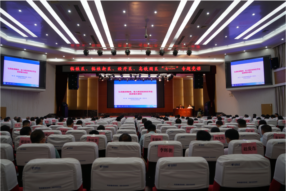 為慶祝“七一”建黨節(jié),喜迎黨的二十大勝利召開,扎實推進(jìn)黨史教育常態(tài)化長效化開展,增強(qiáng)黨員領(lǐng)導(dǎo)干部使命感和責(zé)任感,加快推進(jìn)桂林產(chǎn)業(yè)振興,為打造世界級旅游城市提供堅強(qiáng)的思想和組織保障,2022年6月28日上午,桂林市紀(jì)委駐臨桂新區(qū)管委會紀(jì)檢監(jiān)察組在臨桂區(qū)委黨校一樓報告廳組織召開“弘揚(yáng)嘉庚精神,著力推進(jìn)桂林世界旅游城市建設(shè)”專題黨課。黨課由桂林市紀(jì)委駐臨桂新區(qū)管委會紀(jì)檢監(jiān)察組組長、臨桂新區(qū)黨工委委員石安蘭主持。