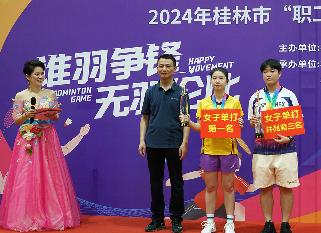 4月27日下午,由市總工會(huì)主辦的“中國夢(mèng) 勞動(dòng)美 凝心鑄魂跟黨走 團(tuán)結(jié)奮進(jìn)新征程”桂林市“職工杯”羽毛球比賽圓滿結(jié)束并舉行了頒獎(jiǎng)儀式。新城投集團(tuán)羽毛球隊(duì)經(jīng)過激烈角逐,在36支參賽隊(duì)伍中摘得多項(xiàng)榮譽(yù):由公司黨委副書記(主持工作)、副董事長、總經(jīng)理朱毅擔(dān)任領(lǐng)隊(duì),吳萍明、龔志祥、楊衛(wèi)來、張欣婭、唐蒙組成的新城投集團(tuán)“黨旗映勝地”羽毛球隊(duì)榮獲團(tuán)體第三名;張欣婭榮獲女子單打第一名;楊衛(wèi)來榮獲男子單打第五名的優(yōu)異成績。