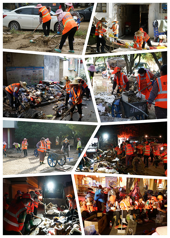 在龍船坪小區(qū)、安新小區(qū)、寧遠(yuǎn)小學(xué)及周邊街道,一群身著橘紅色馬甲、印有“宏謀環(huán)衛(wèi)”的環(huán)衛(wèi)工人成為了救災(zāi)現(xiàn)場的一道亮麗風(fēng)景線。他們不畏艱難,深一腳淺一腳地踩在垃圾堆和泥漿中,一鍬一鍬地清理垃圾和淤泥?,F(xiàn)場工作人員齊心協(xié)力,面對困難毫不退縮,甚至唱起了《團(tuán)結(jié)就是力量》來鼓舞士氣。經(jīng)過晝夜奮戰(zhàn),他們終于將小區(qū)道路上的垃圾清運(yùn)完畢,有效保障了道路的正常通行和居民的出行安全,及時防止災(zāi)后疫情的發(fā)生。