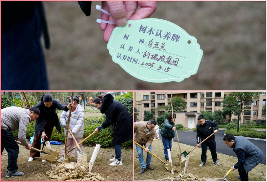 隨后,志愿者們在小區(qū)內(nèi)開展了植樹活動。他們揮鍬鏟土、扶樹正苗、澆水培土,和居民們一起在小區(qū)草坪處種下一排白玉蘭樹。經(jīng)過一番辛勤勞動,一棵棵新栽的白玉蘭樹苗在春風中挺拔而立,為小區(qū)增添了一抹盎然的綠意。這些樹苗不僅美化了小區(qū)環(huán)境,也為居民們營造了一個更加綠色、溫馨的居住條件。