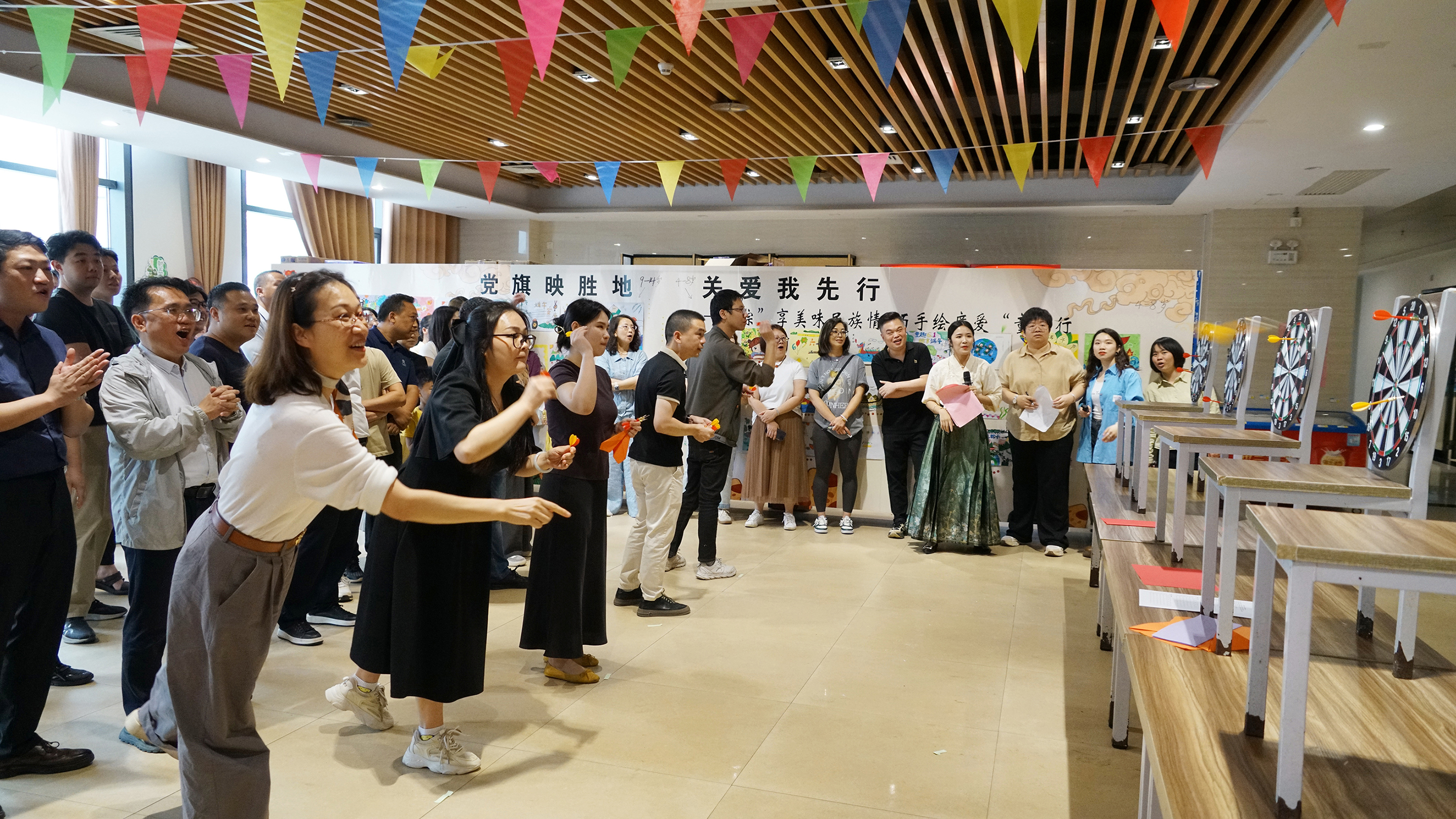 “家企同行·國風非遺——民族文創(chuàng),與‘粽’不‘童’”趣味游戲挑戰(zhàn)環(huán)節(jié),將活動氛圍推向高潮。童年紙飛機、端午射五毒、趣味投壺三大趣味游戲讓職工與孩子都沉浸其中。在童年紙飛機游戲中,為了能讓紙飛機飛得更遠、更久,大家興致勃勃地嘗試著各種折法,隨后用力一擲,紙飛機在空中劃出一道道優(yōu)美的弧線,有的飛得又高又遠,有的則在空中翻轉幾圈后穩(wěn)穩(wěn)落地,看著自己折的紙飛機歡呼雀躍,仿佛回到了無憂無慮的童年時光。端午射五毒游戲則充滿了傳統(tǒng)韻味,大家手持飛鏢,瞄準靶心,每當有人射中五毒圖案,周圍就會響起一陣歡呼聲,大家在歡聲笑語中感受著端午節(jié)的傳統(tǒng)習俗。趣味投壺游戲更是熱鬧非凡,參與者們瞄準壺口,或站或蹲,調(diào)整著姿勢和力度,隨著一次次投中,現(xiàn)場的氣氛也一次次被點燃,歡呼聲、加油聲此起彼伏。歡聲笑語回蕩在整個活動現(xiàn)場。各組成員在比賽中相互配合、相互鼓勵,展現(xiàn)了團隊合作的力量。最終,根據(jù)各組獲得的總分,評選出冠軍組,大家在歡樂中感受到了團隊的溫暖與力量。