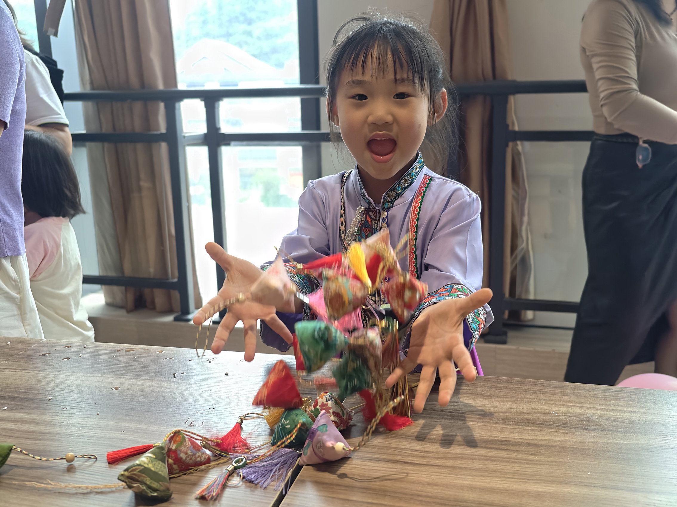 同時,大家在歡快的氛圍中集體移步至“非遺香囊”區(qū)。在這里,冠軍組憑借出色的表現(xiàn)獲得了優(yōu)先挑選香囊的特權,其余組別則按照游戲總分排名依次挑選心儀的香囊。大家通過端午節(jié)香包深入了解中國各民族在端午節(jié)制作、佩戴香囊的悠久歷史和豐富的非遺傳承文化,感受到傳統(tǒng)文化的獨特魅力?;顒蝇F(xiàn)場還準備了豐富的下午茶糕點、粽子等美食,讓大家在享受文化體驗的同時,也能滿足味蕾的享受。