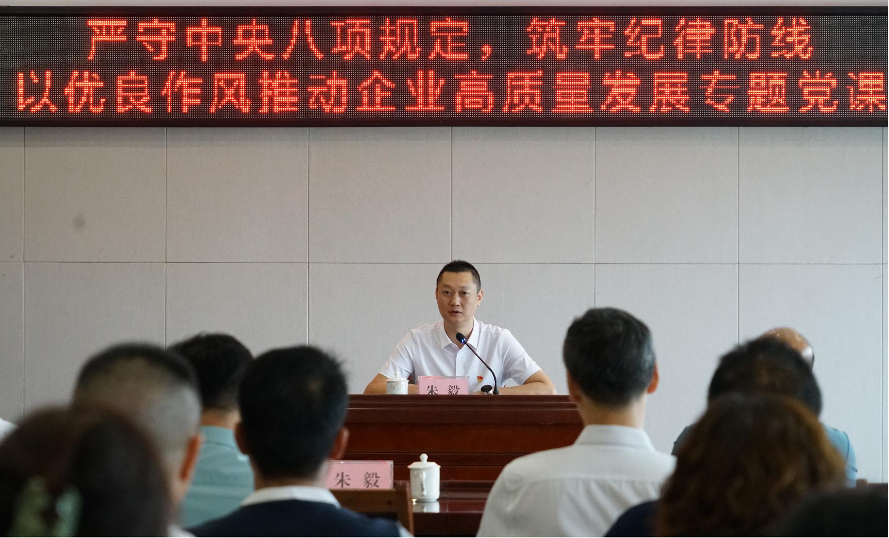 2025年7月8日,集團(tuán)黨委書(shū)記、董事長(zhǎng)朱毅同志以“嚴(yán)守中央八項(xiàng)規(guī)定,筑牢紀(jì)律防線(xiàn),以?xún)?yōu)良作風(fēng)推動(dòng)企業(yè)高質(zhì)量發(fā)展”為題,為集體黨員干部講授專(zhuān)題黨課,由集團(tuán)黨委副書(shū)記、紀(jì)委書(shū)記譚力源主持。此次黨課圍繞理論認(rèn)知、案例警示、實(shí)踐落實(shí)三個(gè)方面展開(kāi),深入淺出地闡釋了中央八項(xiàng)規(guī)定精神的豐富內(nèi)涵與重要意義。