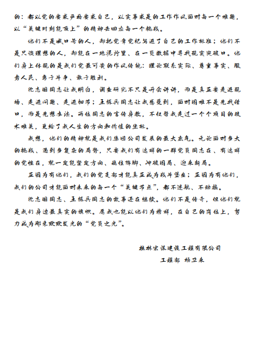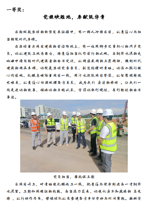 自2025年6月3日啟動(dòng)征稿以來,征文比賽得到支部黨員、入黨積極分子及集團(tuán)職工的廣泛響應(yīng),共收到征文作品11篇。參賽作品以真實(shí)故事為根基,聚焦身邊黨員在崗位奉獻(xiàn)、志愿服務(wù)、攻堅(jiān)克難等方面的典型事例:工地一線的堅(jiān)守身影、志愿服務(wù)中的暖心瞬間、基層攻堅(jiān)中的感人故事……這些平凡崗位上的不平凡事跡,生動(dòng)詮釋了“身邊榜樣”的時(shí)代精神,充分展現(xiàn)了新時(shí)代黨員的責(zé)任擔(dān)當(dāng)與奉獻(xiàn)情懷。