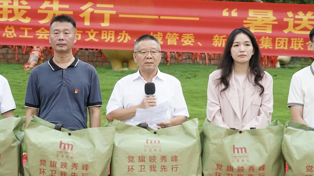 蘇紹坤在致辭中向奮戰(zhàn)在高溫一線的環(huán)衛(wèi)工人致以誠摯問候和崇高敬意。他指出,環(huán)衛(wèi)工人是文明守護者,城市建設每一點成績都離不開他們的辛勤付出。秀峰區(qū)始終把環(huán)衛(wèi)事業(yè)放在城市治理的突出位置,新城投集團下屬宏謀城運公司承接項目后,以專業(yè)能力推動工作提質增效。今后,區(qū)政府將持續(xù)優(yōu)化防護措施、改善作業(yè)裝備,并帶動全社會尊重環(huán)衛(wèi)勞動,使“垃圾不落地”成為市民自覺行動,共同讓秀峰更加潔凈。