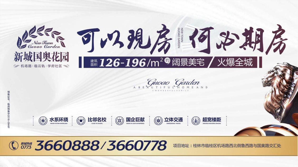新城國奧花園·由本土百億級國有企業(yè)桂林新城投資集團(tuán)開發(fā)建設(shè),位于機(jī)場路與國奧路交匯處,項目占地約390畝,總建面116萬平方米,容積率3.5,是臨桂新區(qū)旅游文化中心板塊核心,年底即可裝修交房,未來發(fā)展?jié)摿Σ豢晒懒俊?