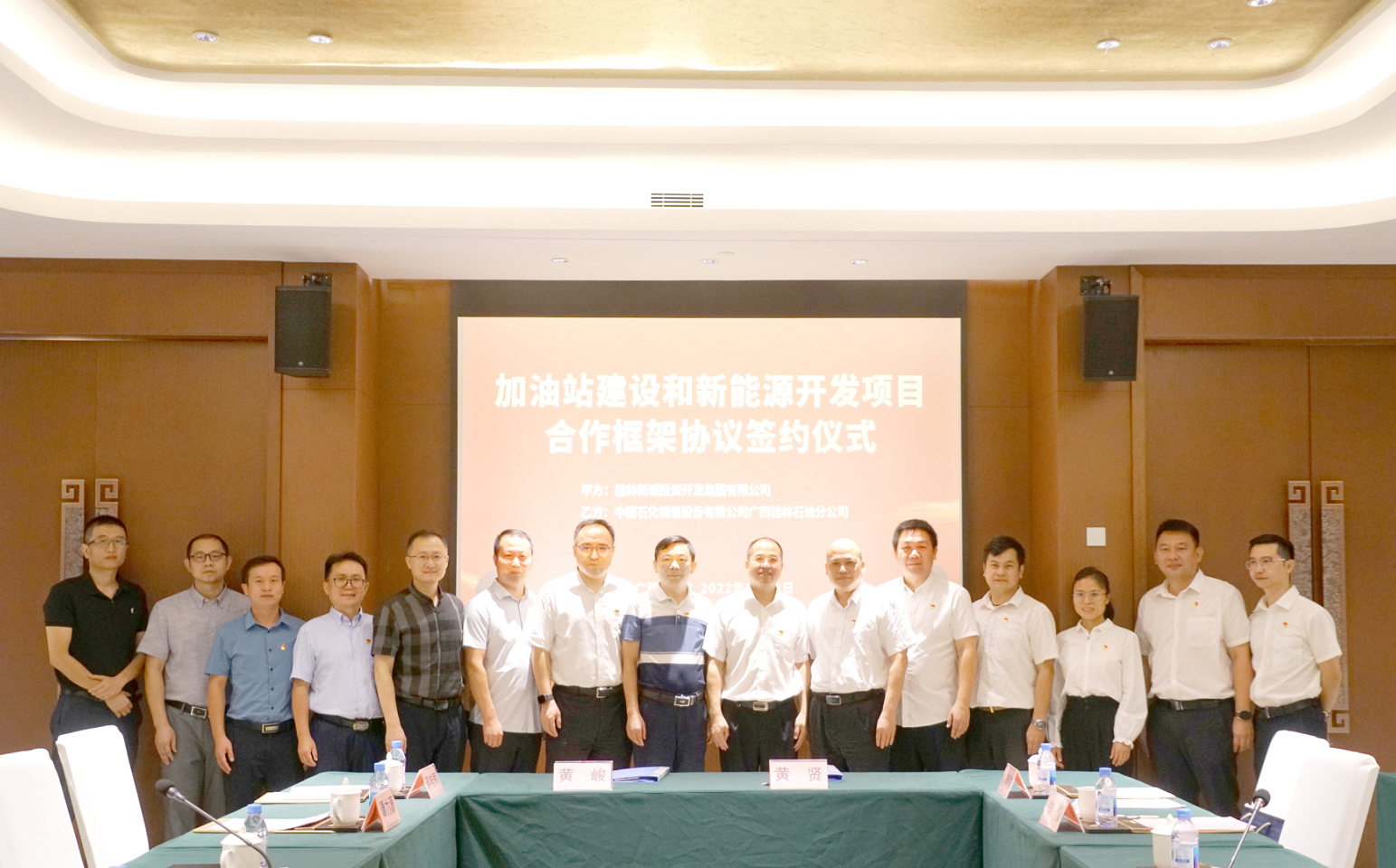 2022年9月21日,桂林新城投資開發(fā)集團有限公司(以下簡稱新城投集團)與中國石化銷售股份有限公司廣西桂林石油分公司(以下簡稱中石化桂林分公司)在桂林宏謀大酒店舉行桂林新區(qū)加油站建設(shè)和新能源開發(fā)項目合作框架協(xié)議簽約儀式。臨桂新區(qū)黨工委委員、管委會常務(wù)副主任李星明,黨工委委員、管委會副主任張慧慶,新城投集團黨總支副書記、總經(jīng)理黃峻,中石化桂林分公司總經(jīng)理黃賢出席簽約儀式。簽約儀式由新城投集團副總經(jīng)理吳濤主持。