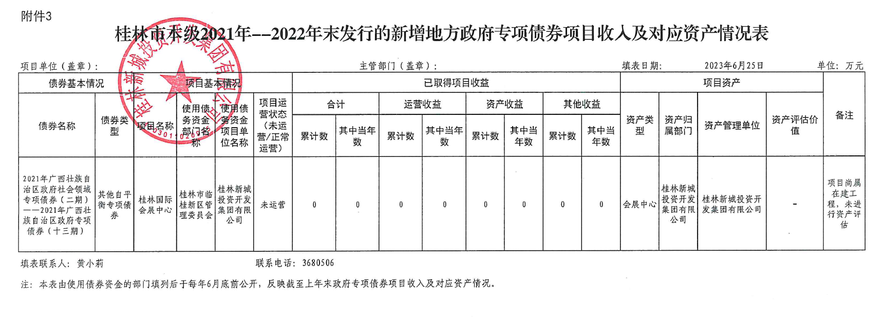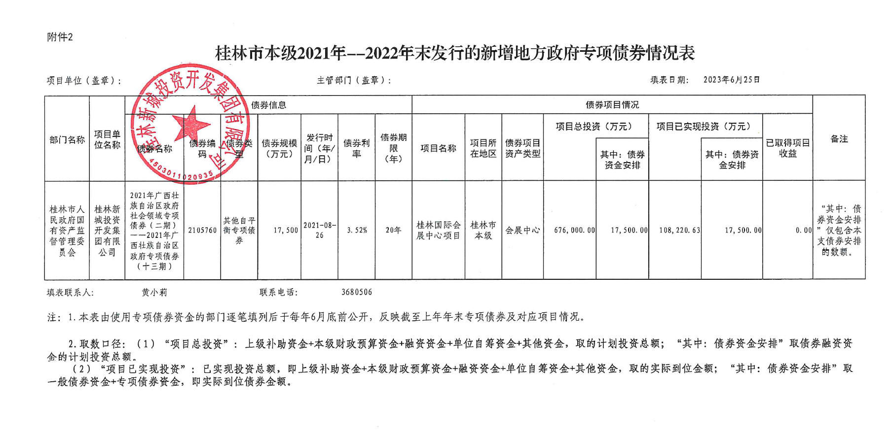 桂林新城投資開發(fā)集團有限公司關于2021年-2022年發(fā)行的新增政府專項債券使用和管理情況