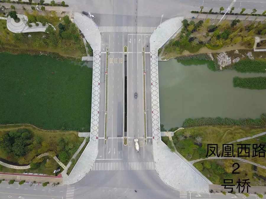 鳳凰西路二號橋位于鳳凰西路與萬平路、秧一路之間,跨越臨桂新區(qū)蘭塘河水系,是連接西城區(qū)的重要通道,橋梁結構采用三跨鋼筋砼梁拱組合體系橋,長度為70米,寬度為50米。該工程于2016年11月開工建設,于2018年3月27日完成初步驗收。