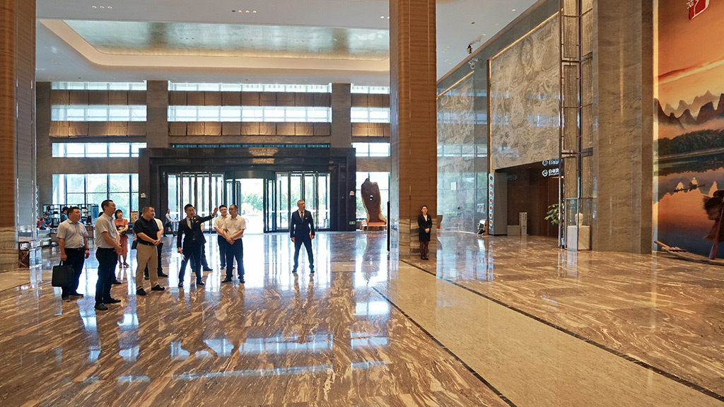 隨后,陶毅一行來到桂林新國際會展中心開展實地調(diào)研工作。在聽取項目的建設(shè)進度和經(jīng)營狀況后,對項目給予充分肯定,他強調(diào),當前會展業(yè)競爭日益激烈,桂林新國際會展中心必須持續(xù)創(chuàng)新并提高服務(wù)水平,以吸引更多的國內(nèi)外展商和觀眾。要深入研究市場需求,精準定位展會主題和內(nèi)容,塑造具有獨特魅力和廣泛影響力的標志性品牌展會。他鼓勵項目團隊繼續(xù)保持積極向上的工作態(tài)度和團結(jié)協(xié)作的精神風貌,為桂林新國際會展中心的建設(shè)和運營貢獻更多的智慧和力量。