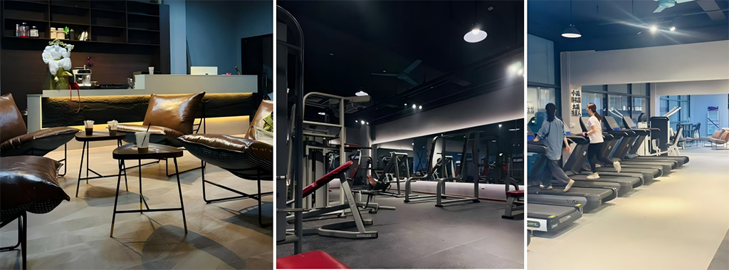 二樓是集運動、休閑與生活等功能于一體的綜合性健身房,場館整體采用北歐極簡設(shè)計,將咖啡廳的松弛感與專業(yè)健身場景相融合,劃分七大功能區(qū):能量補給前臺區(qū)、社交休息區(qū)、力量訓練區(qū)、有氧運動區(qū)、精準體測區(qū)、私教定制區(qū)及親子兒童區(qū)。館內(nèi)配備國內(nèi)一線頂尖品牌舒華健身器材、跑步機,以及韓國進口體測儀,提供24小時恒溫淋浴設(shè)施,還有現(xiàn)磨飲品與運動補劑供應。從硬件設(shè)備到細節(jié)服務(wù),全方位滿足健身運動的各項需求。